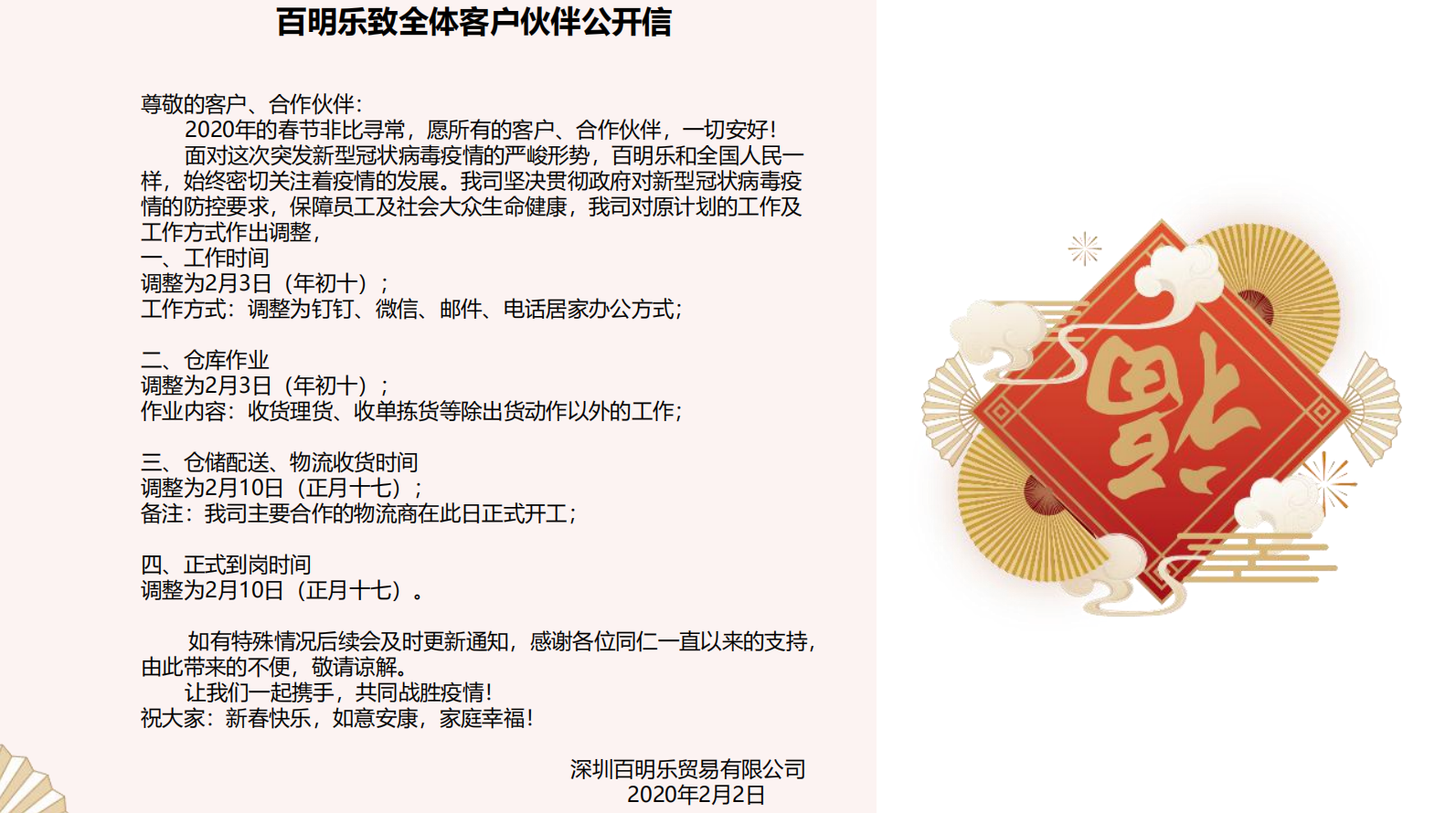 百明樂緻全體客戶夥伴公開(kāi)信