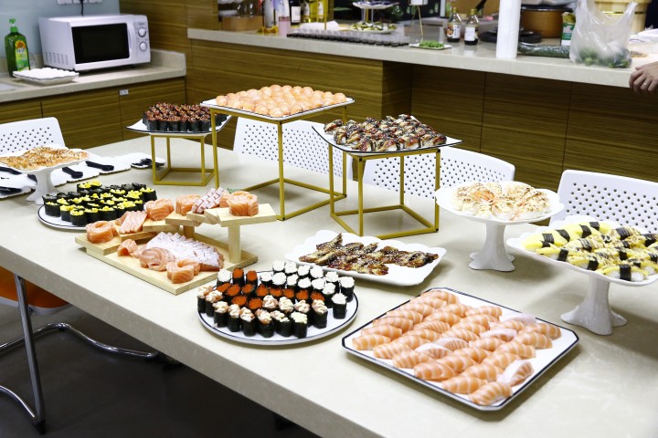 久違的下午茶,企管中心的小姐姐們請來了壽司團隊現場制作新鮮美味的壽司刺身,